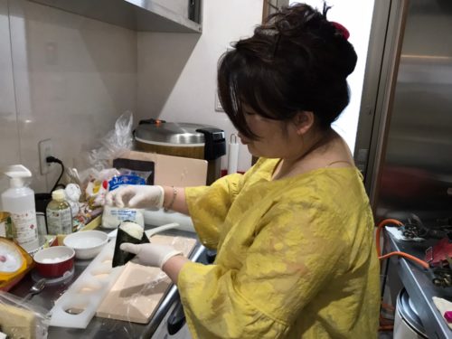 実際に厨房に潜入し、おにぎりを作るところを見せていただきました。