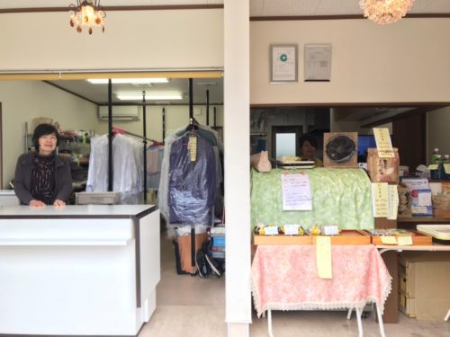 お店に入ってみると、中央が壁で仕切られており、左側がクリーニング店、右側がおにぎり屋さんになっています。