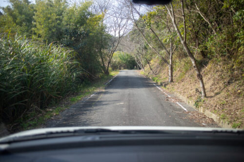 倉岳神社に向かう道と比べれば広めなものの、やはり山道。離合は難しいので、お気をつけて!