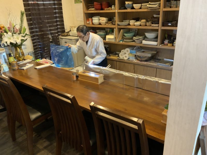ご主人が天ぷらを揚げている様子が見えるカウンター席があります。