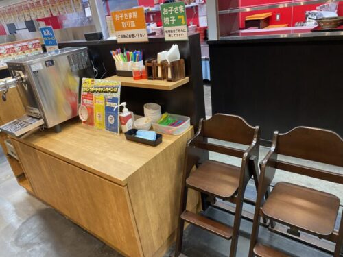 セルフ形式でも子ども用の椅子や食器が揃っているため、ファミリーでも利用しやすい印象でした。