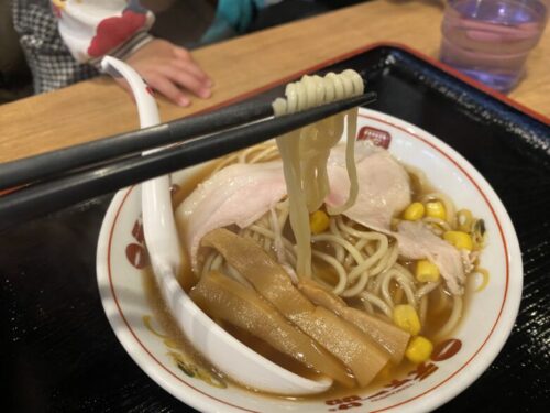 あっさりはその名の通りあっさりベースのスープに麺の味が引き立つ、大人だったら飲みの後にも〆ですいすい食べたいラーメン。子どもの評判は…