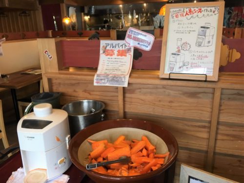 料理を待つ間の嬉しいサービスとして、100%の人参ジュースが無料というサービスも…