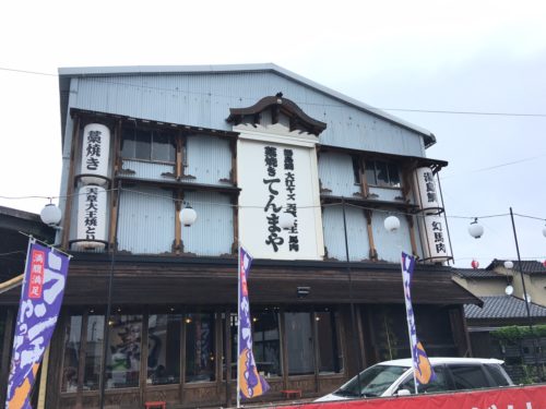 田迎の旧浜線沿いにそびえ立つ、びときわ目立つ大きな建物、こちらが「藁焼き てんまや」です。