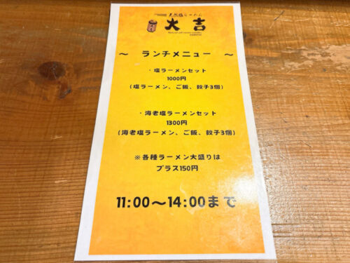 本日ご紹介するのは、「天然塩らーめん大吉」。