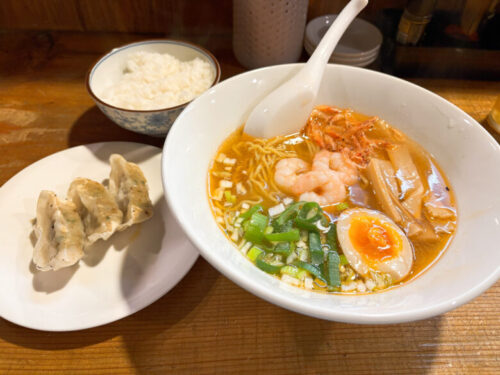 今回は、他ではあまり見かけない海老塩ラーメンをランチ限定セットで頂きます!