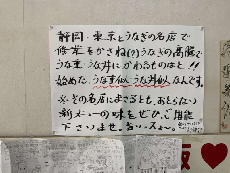 「うな重似」「うな丼似」なるうなぎに変わる味わいのメニューもあるそうです。ちなみに正体はうなぎに似せた豚バラらしいです。