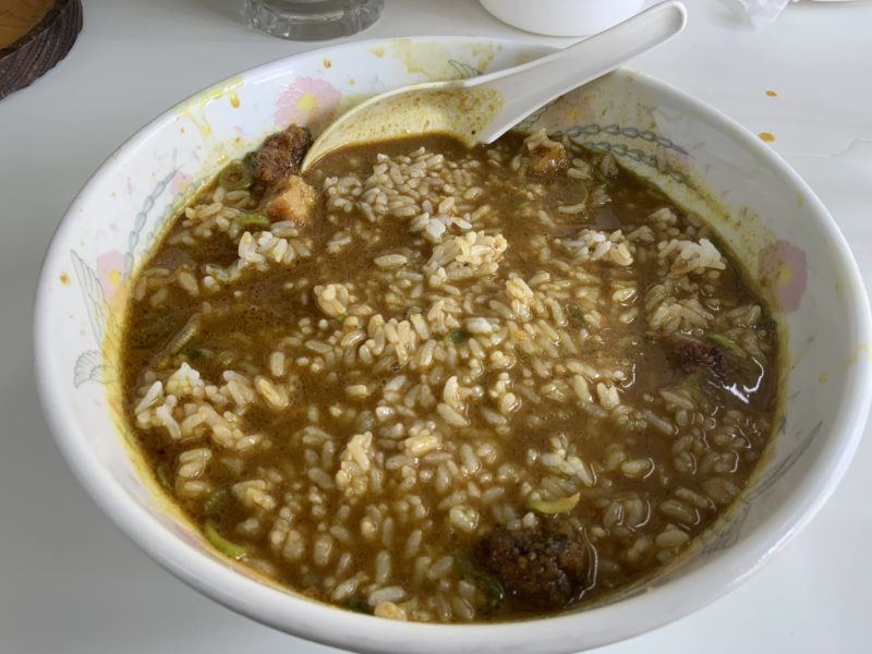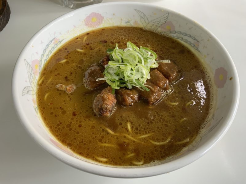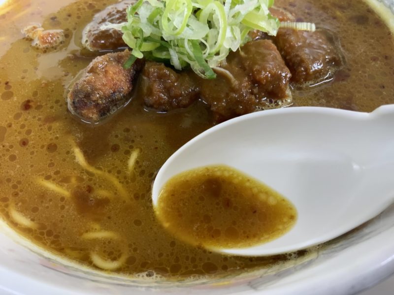 スープは、豚骨ベースのラーメンスープにカレーをブレンドしたもの。かなり配合にこだわってるらしく、カレーなのにラーメンらしさもあって、めっちゃ美味しい。