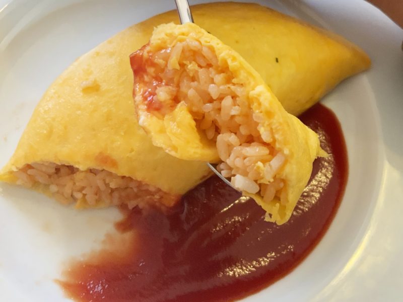 玉子の厚みがオムライスとは思えないくらい。しっかり焼かれているのにふわふわしています。