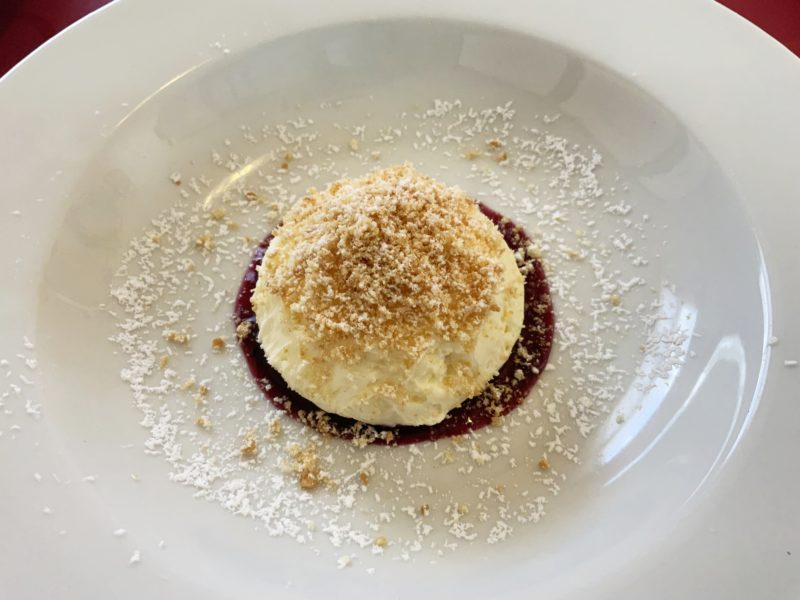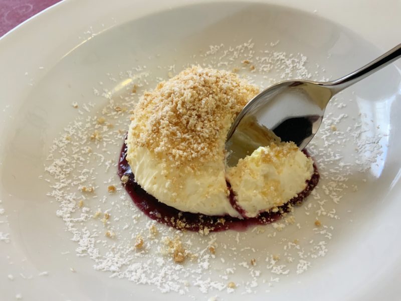 デザートにいただいたのがこの「天使のレアチーズケーキ」。デザートはこの1品のみ。