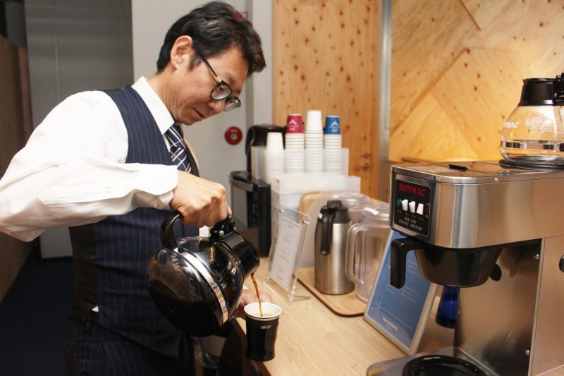 とりあえず、無料のドリンクコーナーでコーヒーでもいれて……