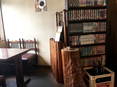 各箇所に揃えられた本棚と漫画本。こういうのがあるだけでも、気兼ねなく利用できるお店という安心感を持てます。
