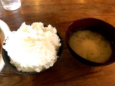 私はライス大盛りとは頼んでいませんので、これが男性の通常スタイルかと。しかし溢れんばかりで・・・お味噌汁はここのも“熱々”でした。ありがとうございます。