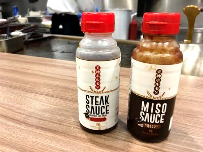 この濃厚な味はお店のオリジナルソースを活用!好みに応じて追加で掛けることもできます。