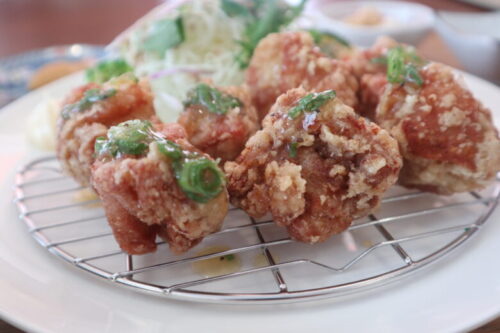 じゅわじゅわの唐揚げにとろとろのネギ塩だれをかけます。