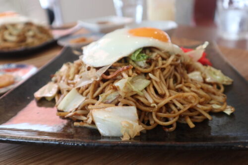 こちらはソース焼きそば定食(味噌汁付き)。+100円でご飯が付けられます。