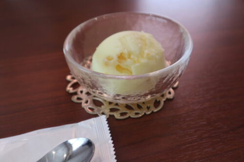 「141スペシャル定食」の食後のデザートは柚子のアイスでした。