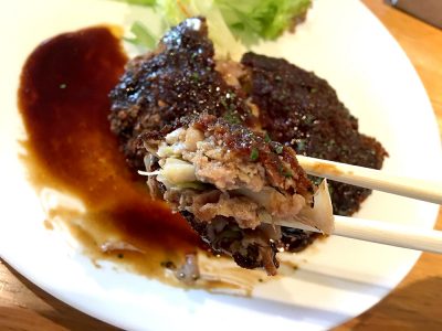 割ってみると、肉汁もふんだんにたっぷり!キャベツもしっかり歯ごたえが感じられるカットの仕方で、肉の旨味と相見えて絶品の美味しさです!