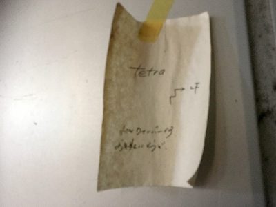 なんと目印は細い階段の壁にテープで貼られた紙一枚のみ…