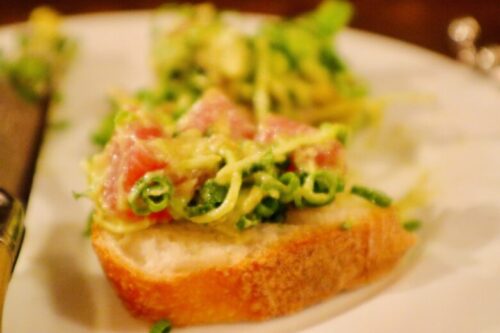 まずは「マグロとアボカドのタルタルバケット付き」。