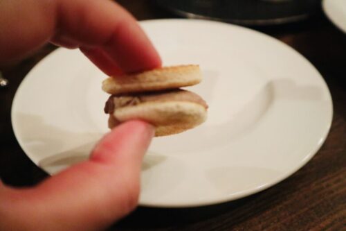 軽~いさくさくっとしたパンでもないクッキーでもない食感に、中のレバーの旨味が口に広がります。