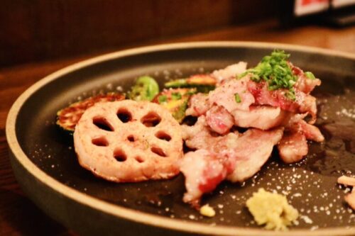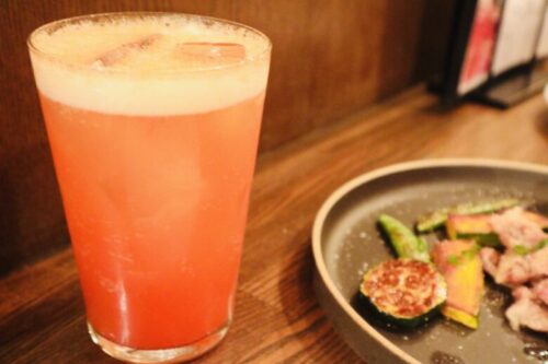 次はトマトサワーをオーダーして、焼き野菜をいだたきました。焼かれているのに新鮮さを感じる、その技に感動します。