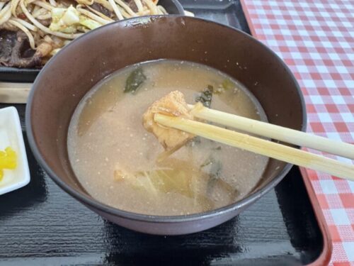 味噌汁の具は豆腐かと思ったらまさかの厚揚げでした。油揚げのように見えるでしょ。でもこれ厚揚げなんですよ。