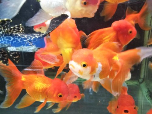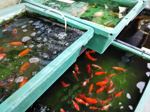 店頭では、金魚、メダカ、鯉が泳いでいます。