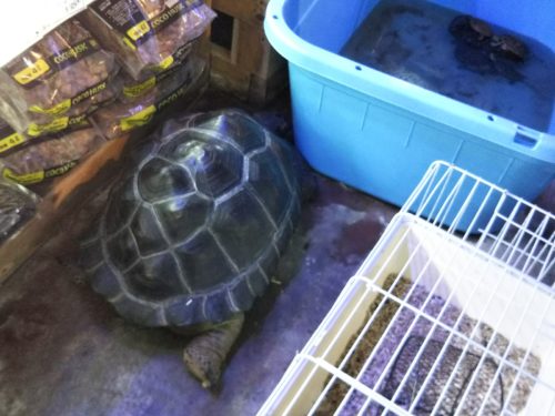 通路の奥でいつも休憩している、すごく大きなカメ