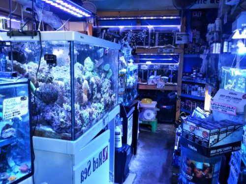 熱帯魚コーナー、海水魚コーナー、金魚コーナー、水草コーナー、爬虫類コーナー、両生類コーナー、昆虫コーナー、珊瑚コーナーなどが所狭しと展開されています。