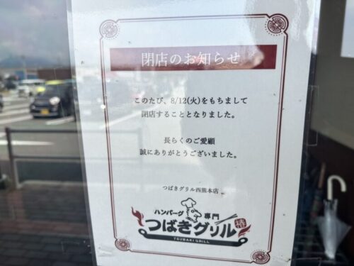 個人的にハンバーグがとことん美味いなあと思っていたイオンタウン西熊本内にある「つばきグリル」が閉店をしていました…