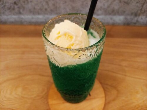 最近は、目にも涼しいアイスコーヒーやクリームソーダが人気です。