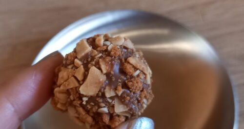 外側のナッツと中の柔らかいチョコレートの贅沢な食感。