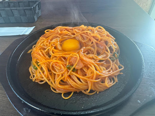 まずはアツアツの鉄板に玉子がのったナポリタン!