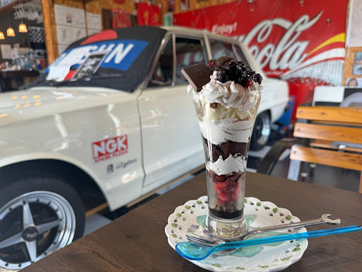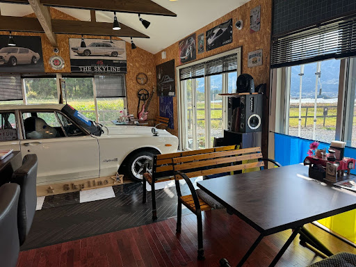 店内にスカイライン2000GT‐X、通称「ハコスカ」と呼ばれる旧車がドーン!と置いてあるカフェなんです。