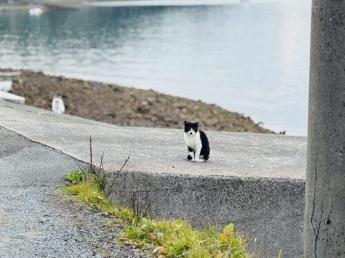 にゃーーん、と島の猫がお出迎えしてくれました。