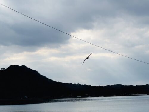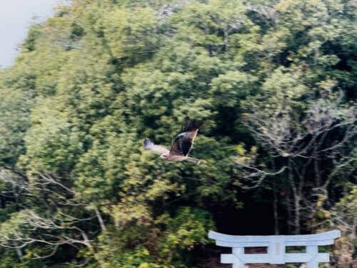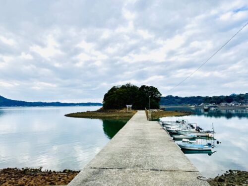 海に浮かぶ、不思議な神社。ぴゅろろろろろーーーーーーと鳴きながら飛ぶトンビと海。日々の景色とは全く違う風景に、ここまで高速料金しかかかっておりませんが、心はとても贅沢な旅となっております。