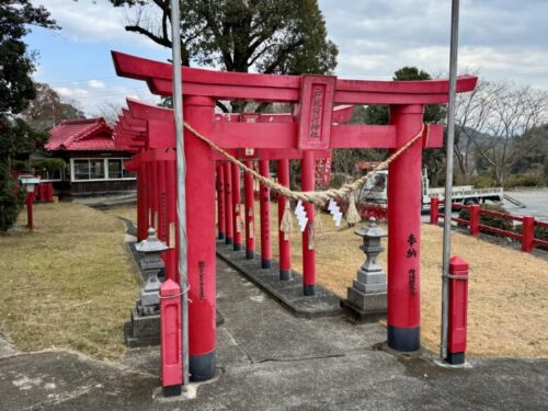 堤防を歩いて近くまでは行けますが、どうにもこうにも辿り着けないようです。ドローンがあったらなぁ。島中を散策してみたいです。海風にさらされているでしょうが、綺麗な鳥居でした。そんなに古いものではないのかもしれません。