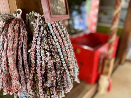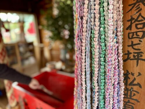 まだ繋げていない鶴が、瓶に入れてありました。これを作っている方の姿を想うと、とても優しい気持ちになります。