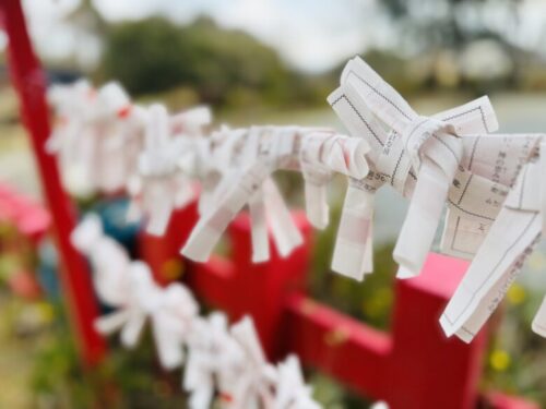 人は見当たりませんでしたが、結ばれたおみくじは沢山ありました。