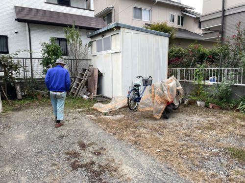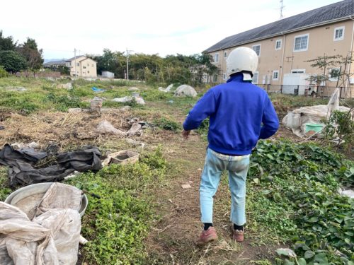 颯爽と原付を乗りつけ、おじさまが畑に登場!