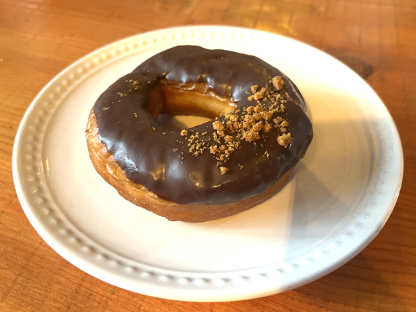 ドーナツにチョコレートとクッキーが乗っている、甘いもの好きにおすすめのドーナツです。