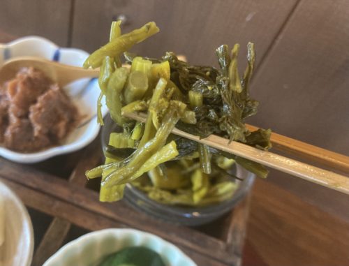まずは、阿蘇高菜の醤油漬け。