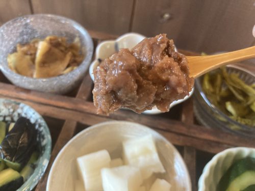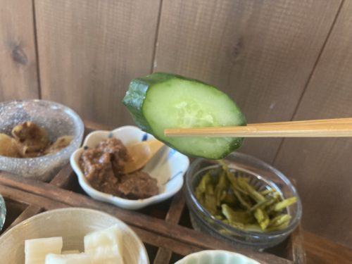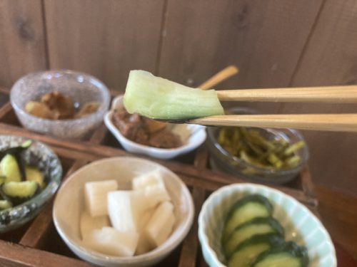 漬物は、日替わり。旬のお野菜から手作りされています。野菜の栄養とミネラル・ビタミン・乳酸菌などを摂取できるため、体にとても良いそうですよ。1つずつ味わっていきましょう。