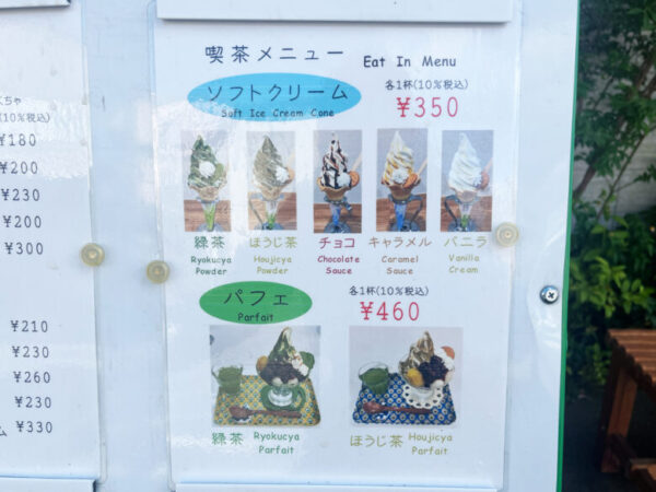 パフェは緑茶とほうじ茶の2種類。