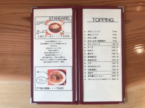ゴマ塩白湯麺(税抜730円)の2種類のみとなっています。