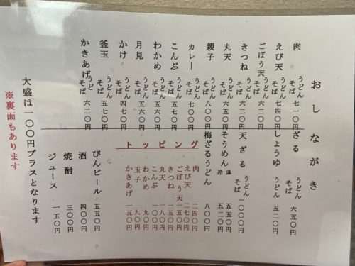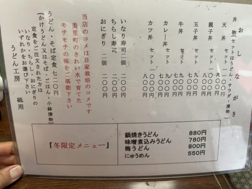 うどんや丼など、うどん屋さんらしいメニューが並びます。