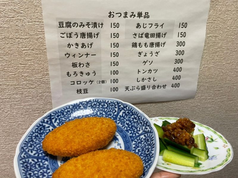 もろきゅう&コロッケ2個で、合わせてたったの200円!
