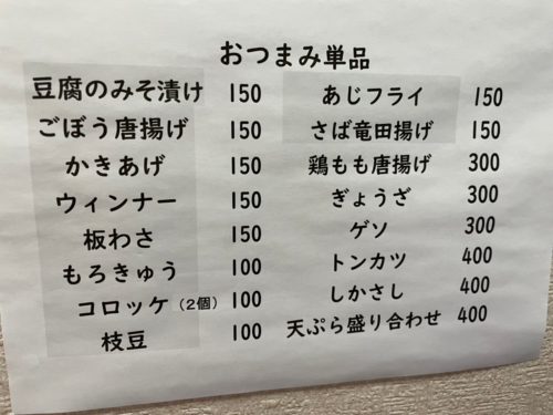 ゲソは300円、板わさ150円で、この価格帯であれば、お財布のことを気にせず、果てしなく飲めそうです。