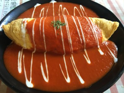 食べてみると、トマトソースは酸味があるのに濃厚で、卵はとろとろ…。おいしくて、一口一口、大事にいただきました。